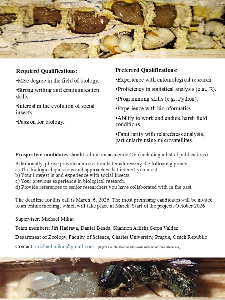 Charles University in Prague, Czech Republic: PhD position in reproductive skew in simple hymenopteran societies